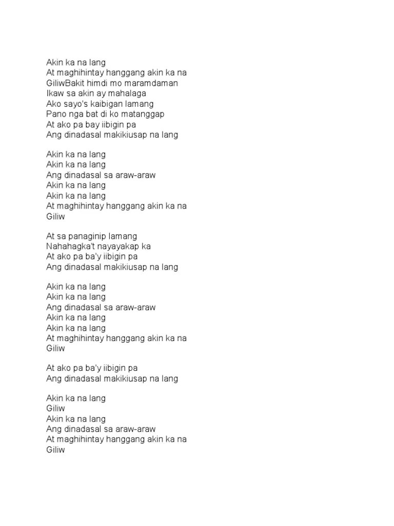 Akin Ka Na Lang Lyrics ... | 558x500 px